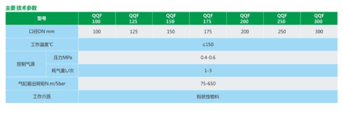 QQF球形进料阀(圆顶阀)主要技术参数: