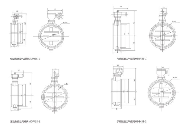 MD943S-1型电动耐磨尘气蝶阀示意图: