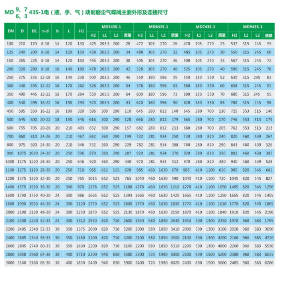 MD943S-1型电动耐磨尘气蝶阀技术性能: