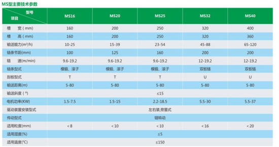 通用型埋刮板输送机分为:MS型-水平型埋刮板输送机;MC-垂直型埋刮板输送机:MZ型-Z型埋刮板输送机。常用的有有三种型式,十二种规格;